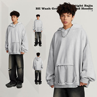 2025 Pullover Sweatshirt Cotton French Terry Embroidery Patch Cropped Unisex Acid Wash Vintage Distressed Applique Hoodies Men